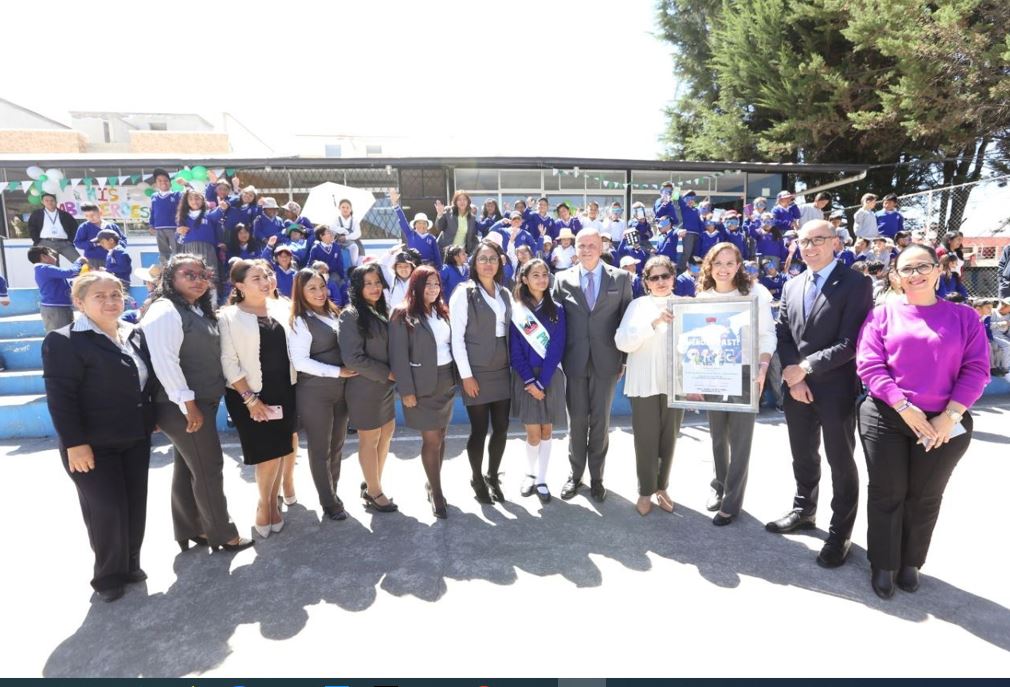 El vicepresidente Alfredo Borrero Vega, la ministra de Educación, María Brown, y representantes de la iniciativa Angels, otorgaron un certificado de reconocimiento a la Unidad Educativa Simón Rodríguez de Pusuquí, en Quito.