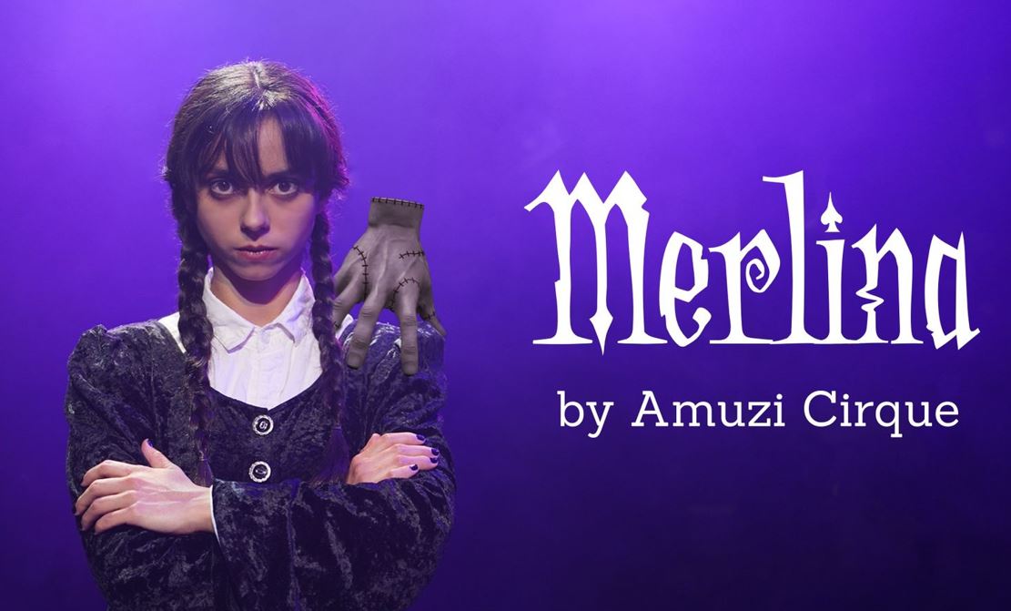 Merlina by Amuzi Cirque llega al Ecuador en un formato de circo musical y presenta la fusión artística de la famosa serie de Netflix "Merlina" y la clásica serie “Los locos Adams”, en sus dos presentaciones el domingo 1 de octubre a las 11h00 y a las 15h00 en el Teatro San Gabriel.