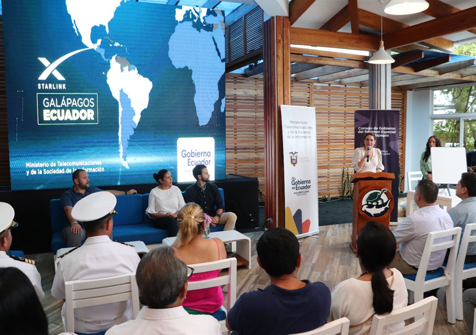 En el evento, organizado en la Isla Santa Cruz, se informó que Starlink destinó 15 satélites dirigidos exclusivamente al territorio ecuatoriano, desde el pasado 1 de abril, para brindar su servicio.