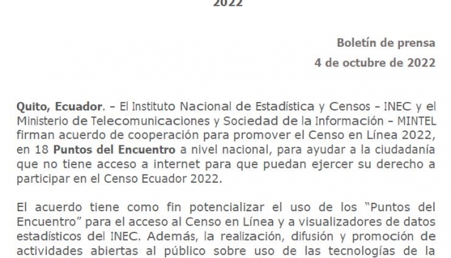 Llegaron al Ecuador los observadores internacionales que acompañarán y verificarán el Censo Ecuador 2022